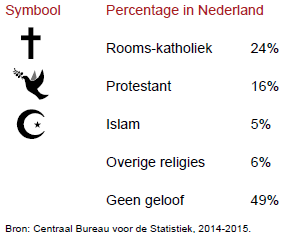 Geloof en religie kunnen een belangrijk deel van je identiteit zijn. In Nederland zijn dit de meest voorkomende religies: