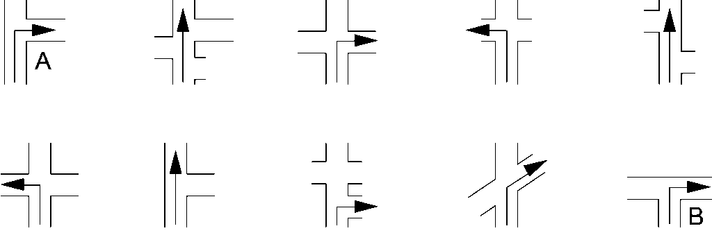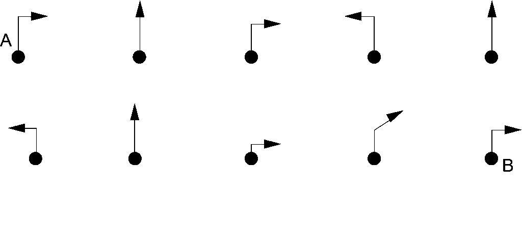 Net zoals bij de kruispuntenroute staan hier ook alle kruispunten getekend, alleen hier in de vorm van een bolletje en een pijl.