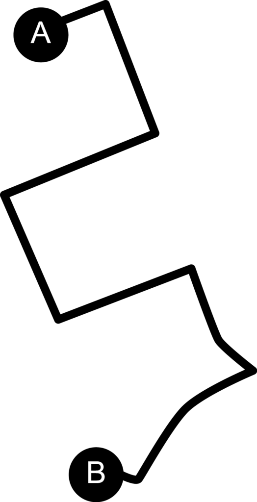 Soms krijg je een route die je vervolgens moet lopen. Aan de hand van de route op de kaart kun je zien hoe de verschillende technieken werken. Ze zijn allemaal een weergave van de route hieronder.